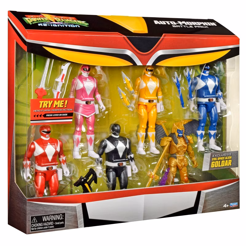Mighty Morphin Power Rangers Re-Ignition Auto-Morphin 6pk Battle Set with Red, Blue, Pink, Yellow, Black Rangers + Exclusive Goldar